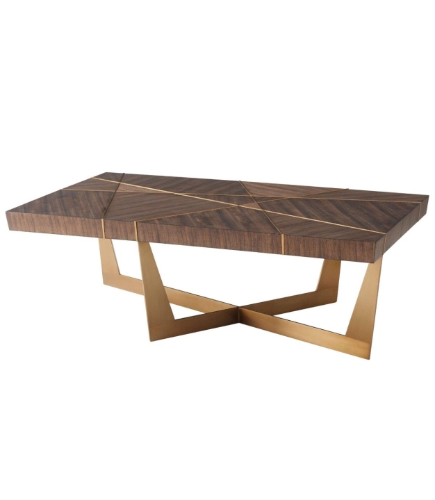 Taisnstūrveida galds ar Paldao finiera virsmu un slīpām malām, dekorēts ar misiņa inkrustācijas līnijām. Pamatne no tērauda ar misiņa apdari piešķir stabilitāti un eleganci.