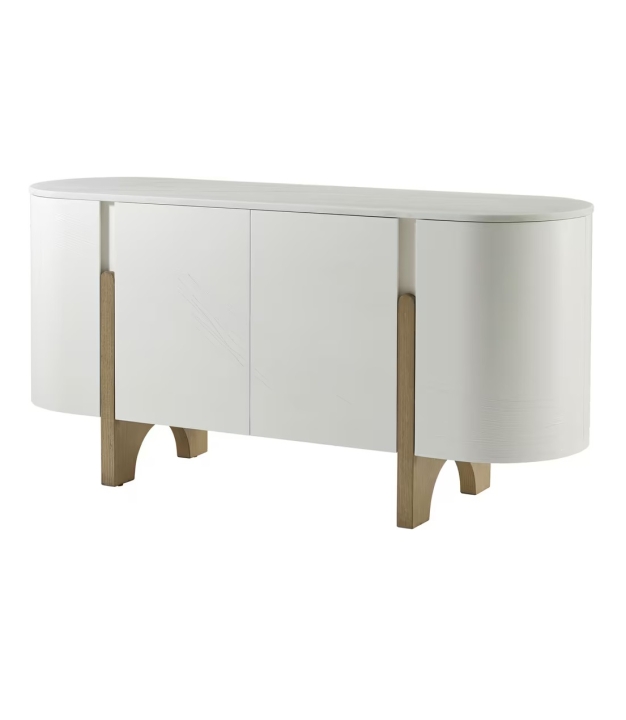 Archo skapis ar plūstošām tekstūrām Amaretti lakas apdarē. Marmora virsma, oša koka kājas Dune tonī un izliekta forma padara šo mēbeli par izteiksmīgu mūsdienu interjera elementu.