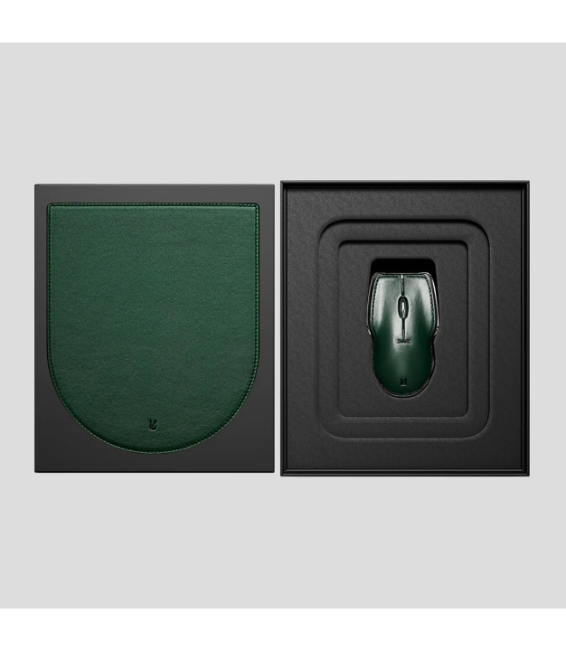 Signature Duo ir izsmalcināts komplekts mūsdienīgam darba galdam – bezvadu alumīnija pele ar zaļas teļa ādas apdari un atbilstošs ādas peles paliktnis. Izstrādāts, lai apvienotu praktiskumu un stilu, šis duets pārvērš ikdienas darbu elegantā rituālā. Peli iespējams personalizēt ar gravējumu, padarot komplektu unikālu.